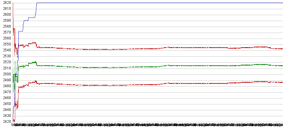 Total: 1'967'497 gamesplayed by 3'973 programs White wins: 610'660 (31.0%) Black wins: 425'811 (21.6%) Draws: 931'026 (47.3%) White score: 54.7% |