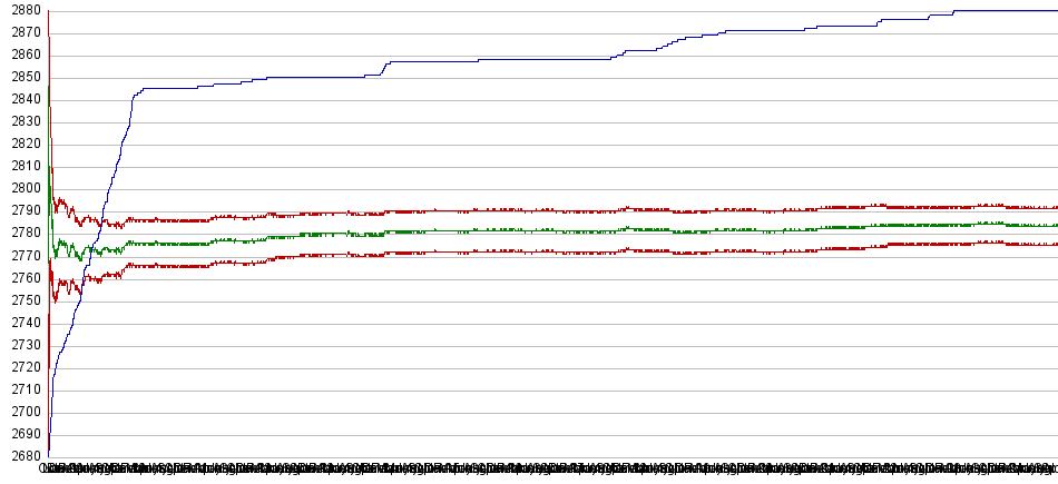 Total: 1'967'497 gamesplayed by 3'973 programs White wins: 610'660 (31.0%) Black wins: 425'811 (21.6%) Draws: 931'026 (47.3%) White score: 54.7% |